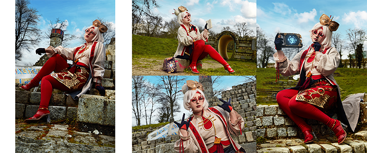 Une cosplayeuse m’a conctacté pour mettre en avant son cosplay fait main de la série de zelda tears of the kingdom, j’ai choisi un décors en ruine qui fait écho au décor des iles flottantes de la série.