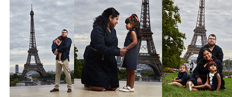 Antoine m’a contacté pour une séance photo avec toute sa famille, et on a choisi l’emblématique Tour Eiffel comme toile de fond.